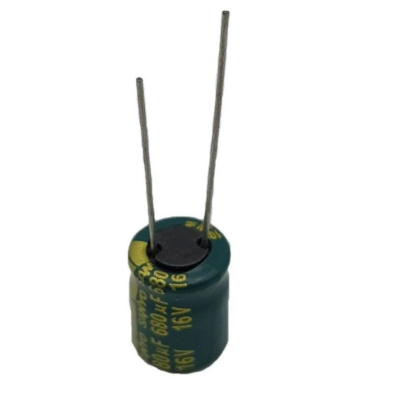 - ولتاژ کاری مناسب: با ولتاژ 16V، این خازن قادر است ولتاژهای عمومی در بسیاری از کاربردهای الکترونیکی و الکتریکال را پوشش دهد. این باعث میشود که خازن الکترولیتی 680uF / 16V مناسب برای سیستمهای کوچک تا متوسط با ولتاژهای پایین باشد.