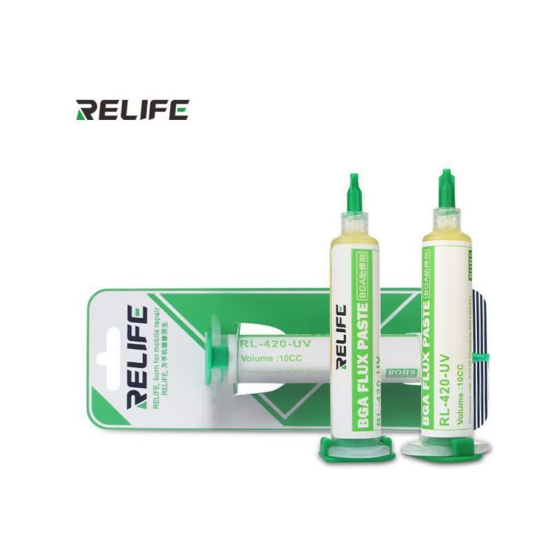 خمیر فلکس سرنگی ریلایف مدل RL-420-UV یکی از محصولات محبوب در زمینه تعمیرات الکترونیکی است که بهویژه در لحیمکاری قطعات حساس مانند BGA، SMD، PGA و PCB کاربرد فراوانی دارد. این خمیر با ویژگیهای خاص خود، بهبود قابل توجهی در کیفیت و دقت لحیمکاری ایجاد میکند.
