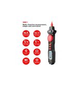 مولتی متر دیجیتالی A3004 با ظاهر قلمی یا خودکاری شکلی که دارد به راحتی قابل استفاده و دارای قابلیت اندازه گیری پارامتر الکتریکی ولتاژ و جریان DC و AC و اندازه گیری مقادیر مقاومت و خازن است و می توان با چرخاندن سلکتور روی مولتی متر بر روی آیکون های مختلف، از قابلیت های دیگر این مولتی متر استفاده کرد. با قرار دادن بر روی NCV می توان بدون تماس مولتی متر وجود ولتاژ را تعیین کرد و مانند یک فازمتر از آن استفاده کرد و امنیت محیط را افزایش داد. وجود LED سبب تسهیل در استفاده از این مولتی متر در مکان های تاریک می شود و در صورت عدم استفاده از مولتی متر دیجیتالی A3004 برای چند دقیقه، مولتی متر خاموش می شود و میزان مصرف انرژی را کاهش میدهد. بک لایت پشت صفحه نمایش این مولتی باعث خوانش راحت مقادیر اندازه گیری شده می شود و با امکان hold کردن داده نیز وجود دارد. ابعاد و اتصال سریع و آسان مولتی متر قلمی دیجیتال ANENG A3004 از ویژگی مثبت دیگر این مولتی متر است و به جذابیت استفاده از آن می افزاید و تمام این قابلیت ها تنها با تغذیه این مولتی متر با دو باتری AAA فراهم می شود. امکانات مولتی متر ANENG مدل A3004 تست دیود نور پیش زمینه: روشن شدن صفحه نمایش HOLD کردن: ذخیره مقادیر اندازه گیری شده خاموش شدن اتومات (Auto-off): جلوگیری از مصرف انرژی و افزایش عمر باتری قابلیت اتو رنج(Auto-Range): تغییر خودکار محدوده اندازه گیری قابلیت NCV(Non-Contact Voltage): تشخیص وجود ولتاژ بدون تماس با جسم دارای چراغ LED: عدم نیاز به منبع نور در مکان تاریک تست اتصال: تشخیص قطع یا وصل بودن اتصالات دمای عملیاتی : 0 – 40 سانتی گراد مشخصات مولتی متر قلمی ANENG مدل A3004 محدوده اندازه گیری ولتاژ DC و AC (ثابت و متناوب) : 400 ~ 4 ولت محدوده اندازه گیری جریان DC و AC (ثابت و متناوب): 200 ~ 40 میلی آمپر محدوده مقاومت: 400 اهم ~ 400 مگااهم محدوده ظرفیت: 4 نانو تا 4 میلی فاراد جنس بدنه ABS و PVC تغذیه از طریق دو باتری AAA نمایش 4000 واحدی مقادیر فرکانس متر : 400MH