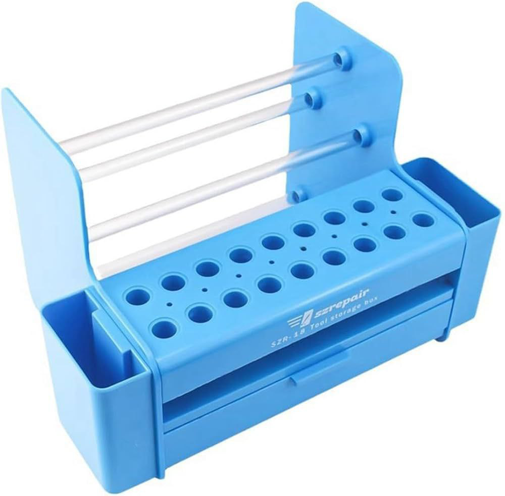 استند نگهداری قطعات SZR‑18 یک باکس/قفسه ذخیرهسازی ابزاری طراحیشده برای مرتب و منظم نگهداشتن سریهای پیچگوشتی، ابزار کوچک و لوازم جانبی تعمیراتی است. این محصول با طراحی چندبخشی و کاربردی مناسب تعمیرکاران، مخصوصاً در تعمیر موبایل، الکترونیک و کارهای DIY میباشد.