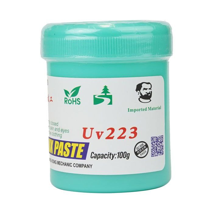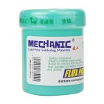 خمیر فلکس 100 گرمی لیوانی مکانیک UV223– از روغن فلاکس مکانیک میتوان در قبل و بعد از لحیم کاری استفاده کرد. از طرفی خاصیت شیمیایی روغن فلکس بگونه ایست که قلع پذیری را افزایش میدهد و از لحیم سردی جلوگیری میکند. از مهمترین ویژگی این محصول میتوان به پایین آمدن زمان لحیم کاری و جلوگیری از آسیب های احتمالی به قطعات بورد اشاره کرد. خاصیت آنتی اکسیدان خمیر فلاکس 100 گرمی لیوانی مکانیک UV223 بگونه ایست که به عنوان نوعی محافظ بر روی سطح لحیم ذوب شده قرار میگیرد و از اکسیده شدن آن جلوگیری میکند. توجه فرمایید که به هیچ عنوان نباید پوست یا چشم شما به این خمیر آغشته شود همچنین بعد از استفاده بلافاصله درپوش آن را بر روی آن قرار دهید تا از خشک شدن خمیر جلوگیری شود.