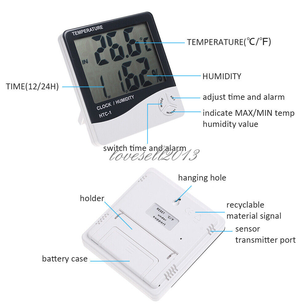 درنتیجه، دماسنج دیجیتالی رطوبتسنج داخلی HTC-1 با ساعت ابزاری عالی برای نظارت بر سطح دما و رطوبت در هر محیطی است. مهم است که مطمئن شوید دستگاه در مکانی خشک و خنک و بهدوراز نور مستقیم خورشید و سایر منابع گرما یا سرما قرار میگیرد. باتری باید هر 6 تا 12 ماه بسته به استفاده تعویض شود و کالیبراسیون نباید ضروری باشد اما میتواند برای اطمینان از حداکثر دقت مفید باشد. اگر با دستگاه خود مشکلی دارید، لطفاً برای راهنمایی بیشتر با ما تماس بگیرید.