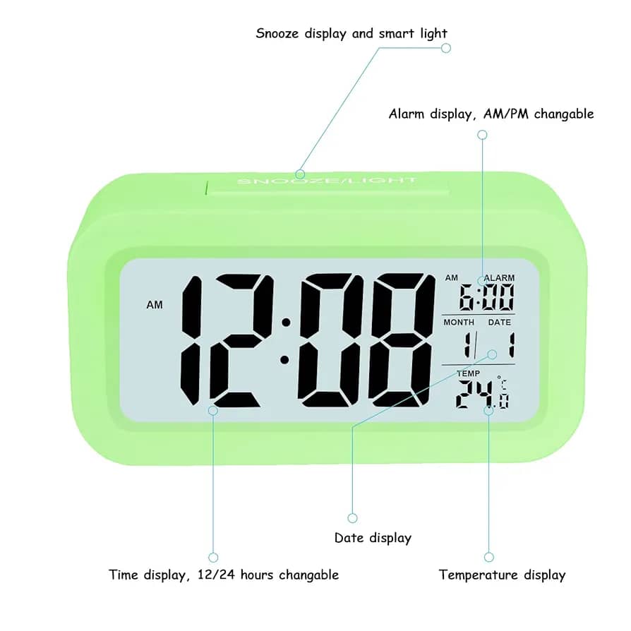 نمایش ساعت و تقویم ، نمایش دما ، دارای بک لایت ، آلارم و تایمر مناسب برای اتاق کودک،منازل(اتاق خواب،اتاق کار، آشپزخانه )، محیط کار و …