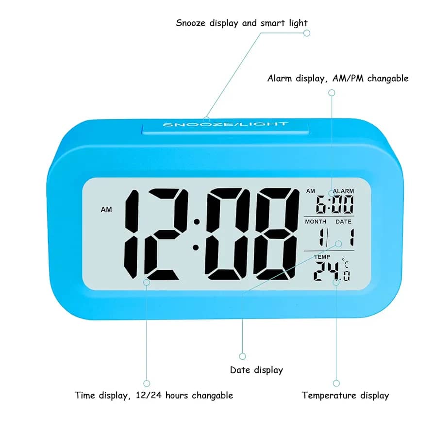 نمایش ساعت و تقویم ، نمایش دما ، دارای بک لایت ، آلارم و تایمر مناسب برای اتاق کودک،منازل(اتاق خواب،اتاق کار، آشپزخانه )، محیط کار و …