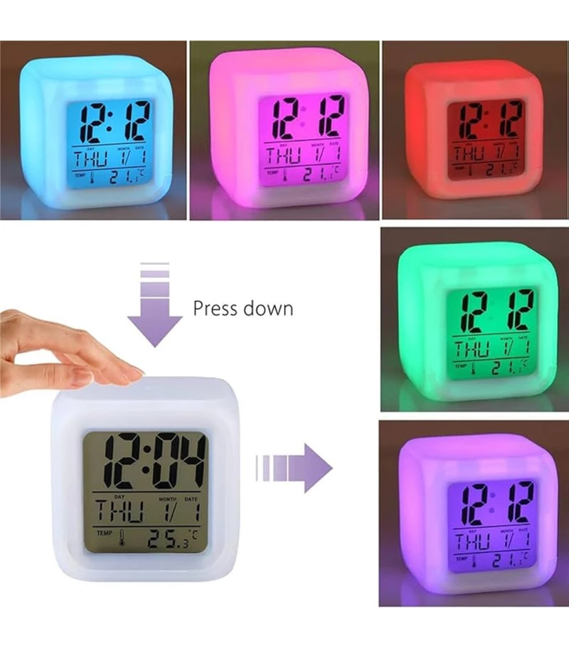 ساعت و دماسنج دیجیتال رنگی آلارمدار مکعبی مدل CHH508 – جلوهای مدرن و کاربردی برای میز کار و منزل