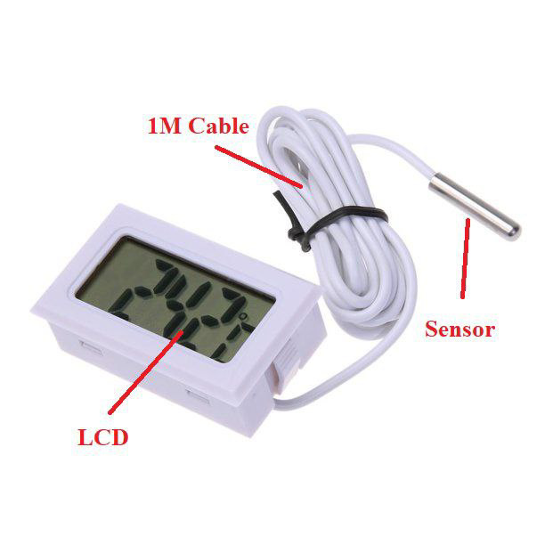 دماسنج دیجیتال با نمایشگر LCD با محدوده اندازه گیری 50- تا 110+ سانتیگراد (محصول بدون باطری – باطری جداگانه در سایت خرید شود AG13)