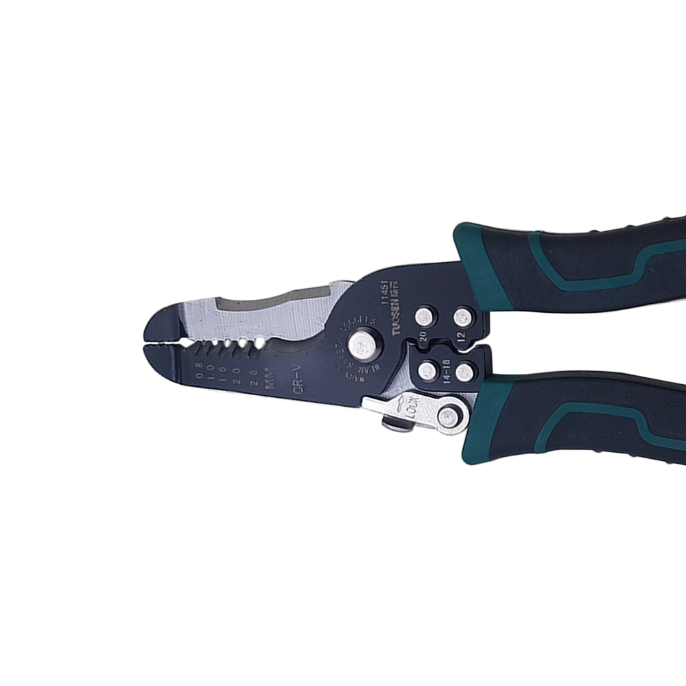 سیم لخت کن توسن مدل TUOSEN 11451 به لطف طراحی ویژه خود، میتواند سیمهای مختلف را بدون آسیب به هادی داخلی و با بالاترین دقت لخت کند. دستههای ضد لغزش با روکش نرم، کار با این ابزار را حتی در استفادههای طولانی مدت، کاملاً راحت و بدون خستگی میکند. بدنه ساخته شده از کروم-وانادیوم، علاوه بر استحکام بالا، عمر طولانیتری برای این ابزار به ارمغان میآورد.