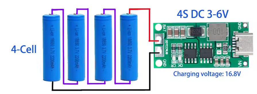 معرفی شارژ باتری لیتیومی 4 سل 4 آمپر با TYPE-C
