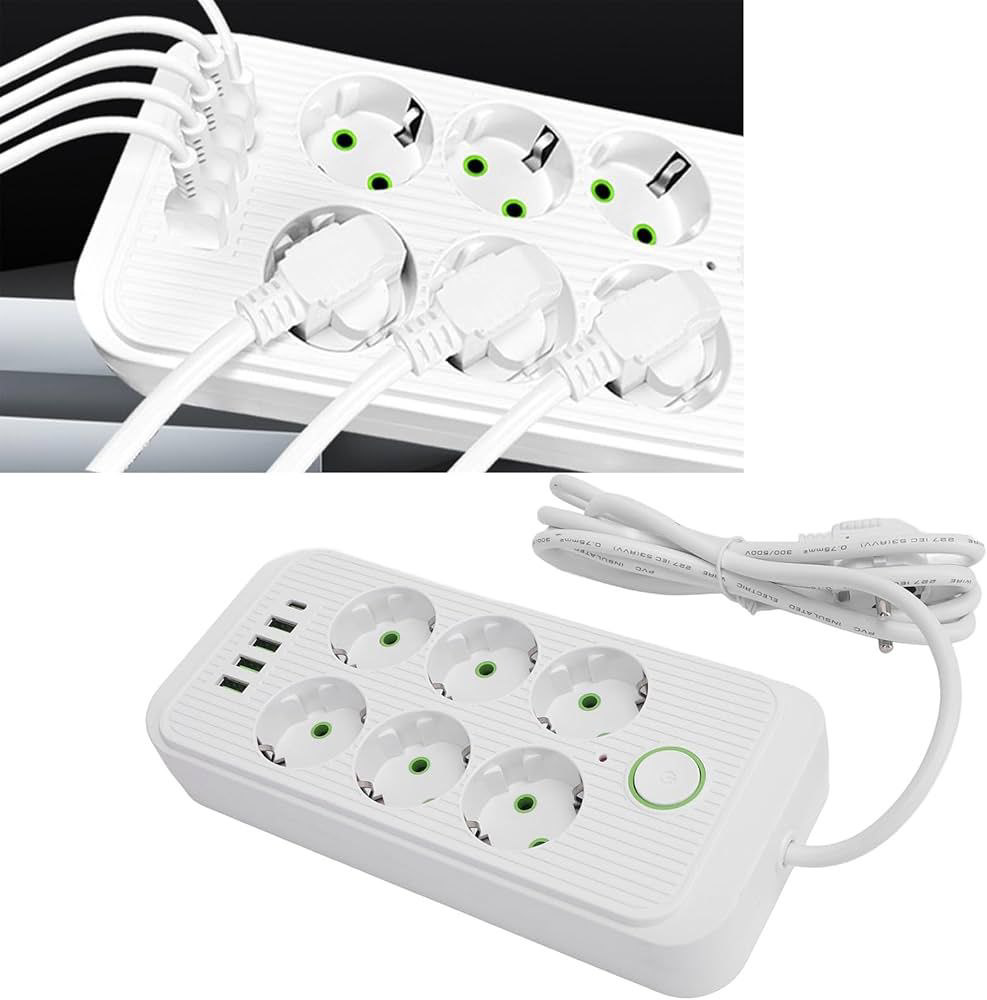 کاربرد شش راهی برق یونیورسال با 3 خروجی USB و تایپ سی (سفید):