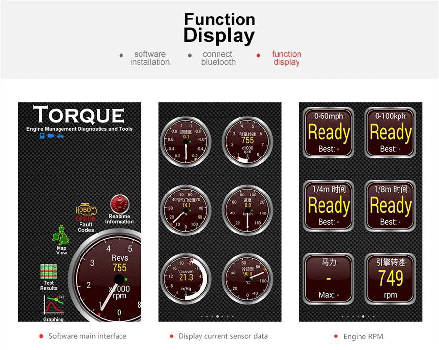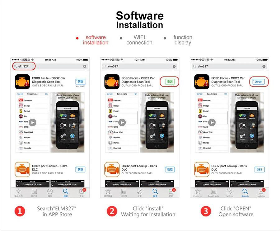 SUPER OBDII MINI can be used on IOS and Android syetem smart phone PC and so on… SUPER OBDII MINI auto checker is able to detect and interpret these protocols automatically. It also provides support for high speed communications and a low power sleep mode. It uses AT commands to communicate with a host device(PC, notebook, IOS, Smart phone and so on). There are plenty of software package available, which are fully compatible with WI-FI OBD AUTO Checker. Some of them have pretty useful features, such as engine runnign parameters monitoring, DTC reading and clearing, MPG meter, etc. You can even write your own software on a specified hardware platform if you wish, because the AT commands are fully documented and are very well explained