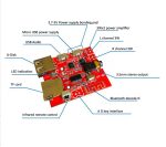 توصیه میشود 5 ولت 1 آمپر را وارد کنید. اگر منبع تغذیه کافی نباشد، صدای بلندگو کم خواهد بود. هنگامیکه منبع تغذیه بهطورجدی ناکافی باشد، بلندگو صدای “تیک” یا حتی بدون صدایی تولید میکند.