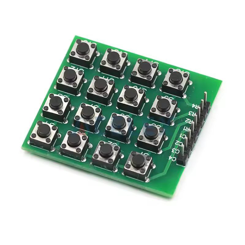 کی پد 4 در 4 ماتریسی با میکروسوئیچ یکی از اجزای اساسی در پروژههای الکترونیکی است که بهطور گسترده در تنظیم منوها، پروژههای کنترل، و رابطهای کاربری مختلف مورد استفاده قرار میگیرد. این کی پد شامل 16 کلید است که هرکدام بهطور مستقل برای انجام دستورات مشخصی طراحی شدهاند. اتصال این کی پد به مدار از طریق پین هدرهای نری انجام میشود، که نصب و استفاده آن را بسیار ساده میکند. کی پدهای ماتریسی بهویژه برای کاربردهایی که نیاز به ورودیهای متعدد دارند، مانند برنامهنویسی میکروکنترلرها و رباتیک، مناسب است.