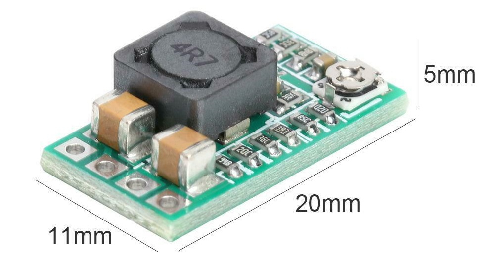 در این مبدل امکان تغییر ولتاژ توسط پتانسیومتر قرار گرفته شده بر روی ماژول وجود دارد. در حالت پیک جریان تا 3A میتوان خروجی گرفت.