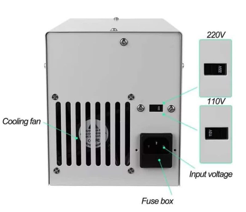 - تست و تعمیر مدارهای الکترونیکی:این منبع تغذیه برای تعمیرکاران و مهندسان الکترونیک بسیار مفید است. به دلیل قابلیت تنظیم دقیق ولتاژ و جریان، میتوان از آن برای تست و تعمیر قطعات مختلف الکترونیکی مانند بردهای مدار چاپی (PCB)، تراشهها و قطعات حساس استفاده کرد.