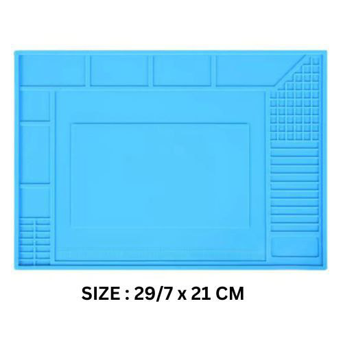 - ابعاد مناسب برای کار روی بردها و قطعات متنوع:با اندازه حدود **۲۹۷ × ۲۱۰ میلیمتر**، این پد فضای مناسبی را برای نگهداری بردها، قطعات و ابزار بر روی میز تعمیر ارائه میدهد.