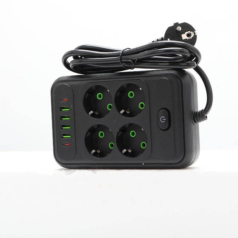 چهار راهی برق یونیورسال با 3 خروجی USB و تایپ سی 2500 وات (مشکی) مدل T203