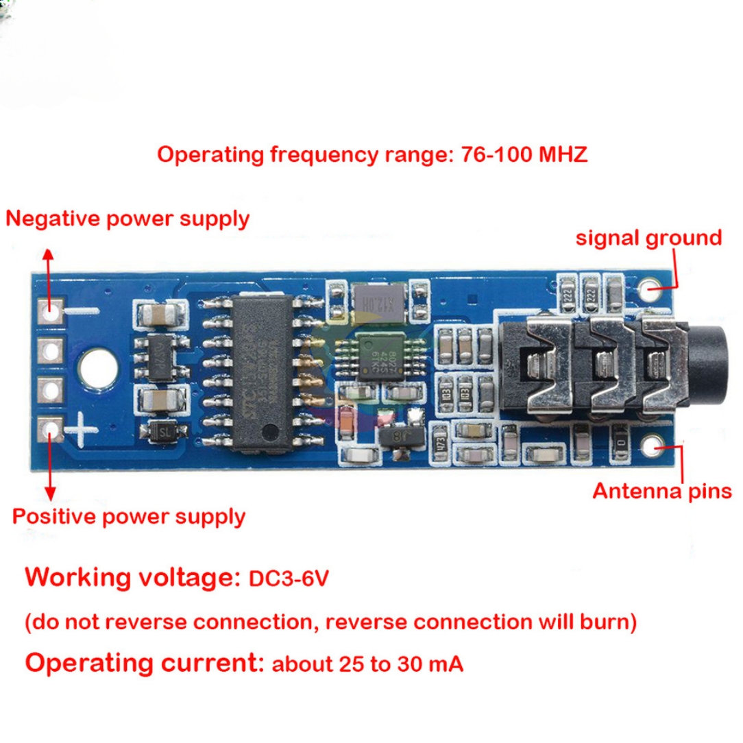 Module can directly drive the headphones to the module is powered on the formation of a high-quality FM stereo radio